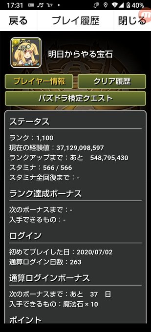 パズドラ 通算ログイン日数の確認方法 魔法石はいつもらえるの